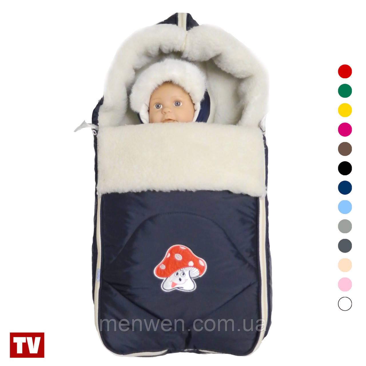 Зимовий дитячий конверт на хутрі під овчину "Грибочок"