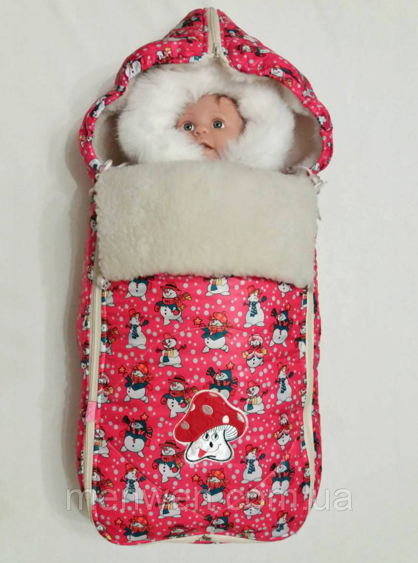 Зимовий дитячий конверт на хутрі для дівчинки "Грибочок"