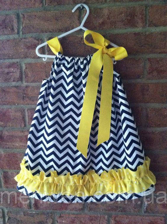 Стильна сукня стане незамінним у гардеробі маленької модниці. Поєднання тканини в плаття жовтою стрічкою, надають платтю легкості.